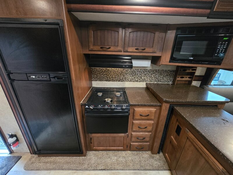 - **Kitchen Amenities:** The well-equipped kitchen includes a large refrigerator, three-burner cooktop, oven, and a microwave, making meal preparation a breeze. Ample counter space and cabinetry provide plenty of room for all your cooking essentials.