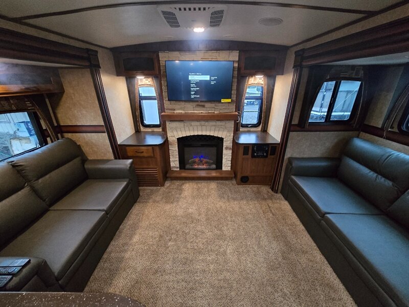 - **Spacious Living Area:** The 29REKS is designed with an open floor plan that maximizes space with 3 Slides, featuring a comfortable living area with plush seating and large windows that allow natural light to flood the interior. Adjacent Pull out couches in the living room provide plenty of sleeping space.