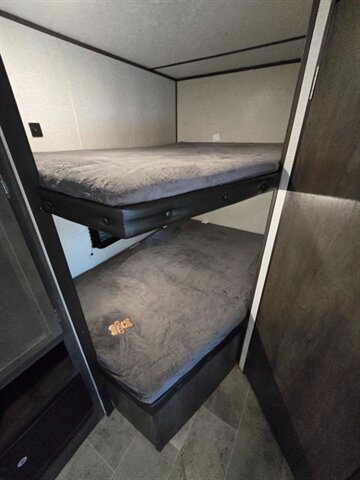 Step inside this well equipped bunk house and you'll find most of the amenities from home. Extra large slide out in the living space. Large LED TV's throughout. Large LED lit awning. Double bunks. Financing available and complimentary 7 day guarantee included.