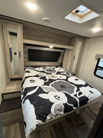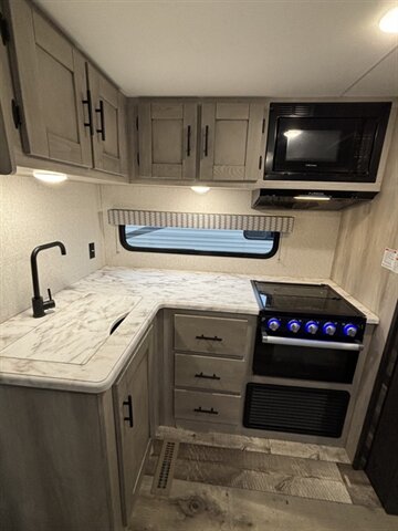 2022 K-Z CONNECT 221RBSE in a clean White exterior with a modern Gray interior — a rear-bath layout built for comfortable weekend trips. Factory-equipped with a full galley (three-burner stove with oven, microwave, refrigerator, stainless sink and prep space), a comfortable front bed with wardrobe storage, and a roomy rear bathroom with shower and vanity. Comfort and convenience features from the factory include ducted A/C and furnace, LED interior lighting, Bluetooth stereo with interior/exterior speakers, power awning with LED light strip, pass-through exterior storage, electric tongue jack, stabilizer jacks and 30-amp hookup. This trailer is ready for your next adventure. Financing available. Trades considered. 7 day complimentary guarantee included.